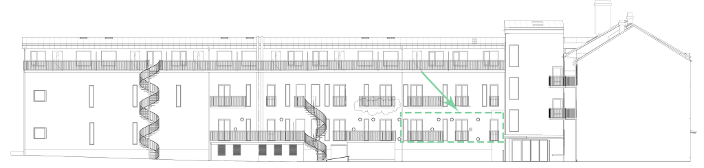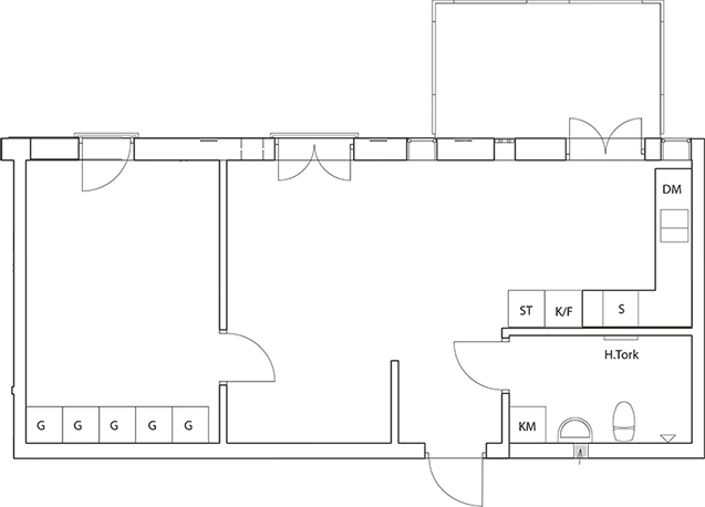 Utrustning: toalett, dusch, värmeslingor, kommod med tvättställ, handduksvärmare, spegelskåp med belysning och eluttag, tvättmaskin och torktumlare.